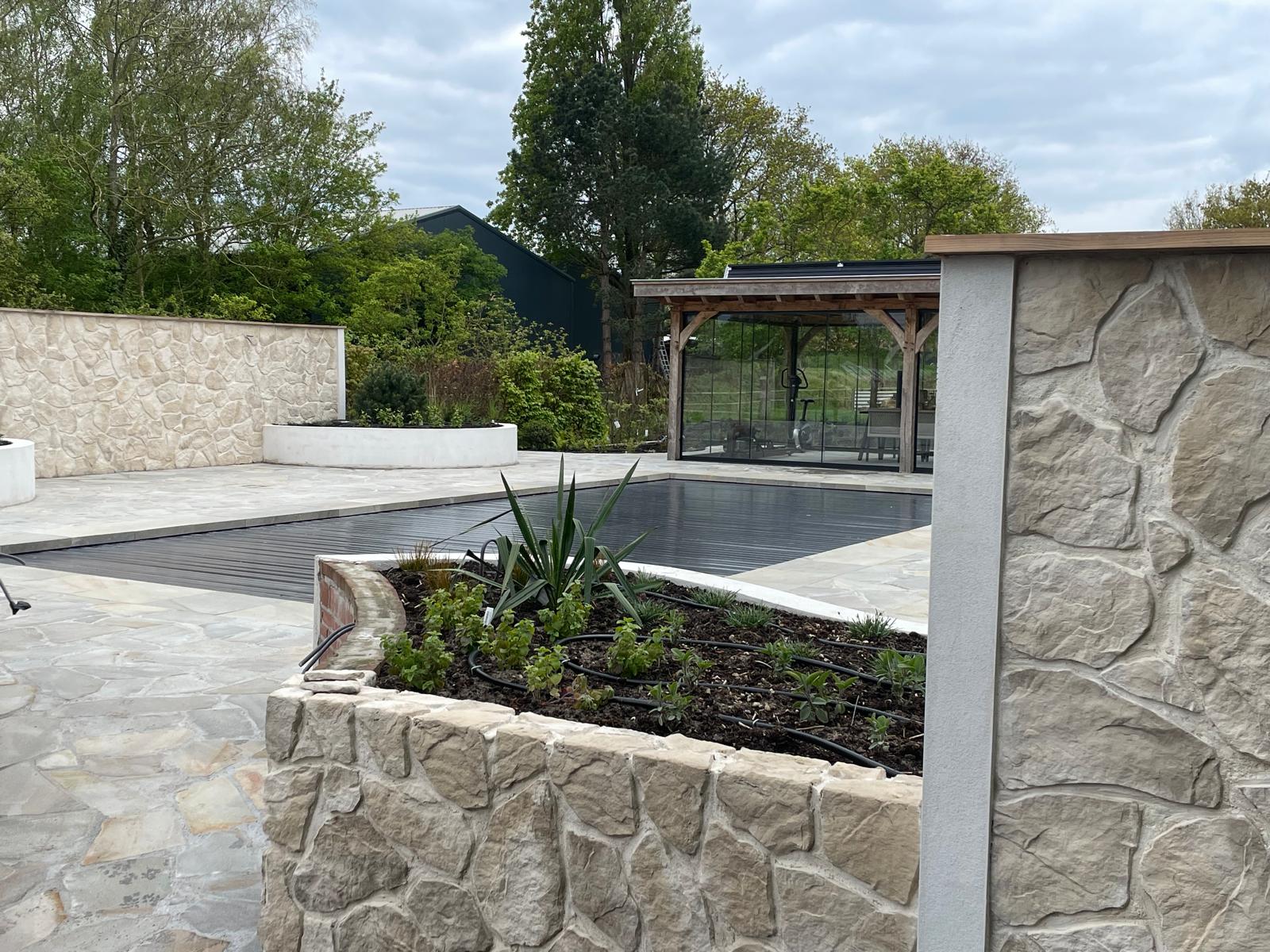In de tuin brengt natuursteen structuur en sfeer. Looppaden, borders of traptreden krijgen een natuurlijke uitstraling die mooi verweert met de seizoenen. Rondom het zwembad is het niet alleen esthetiek die telt: slipvastheid en comfort onder de voeten maken natuursteen hier een praktische en stijlvolle keuze.