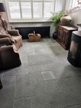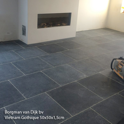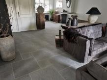 Bourgondische Dallen Auxerre Grand Gris Antique (Semi Honed) Groot Wildverband 2,2 cm dik De Bourgondische Dallen Auxerre Grand Gris Semi Honed (Tandur Grey) zijn harde kalstenen tegels uit India. De prachtige kleurnuances bestaan uit diverse grijs en grijsblauwe tinten. De breukruwe tegels worden geschuurd/geborsteld en de randen handgekapt. Verv...
