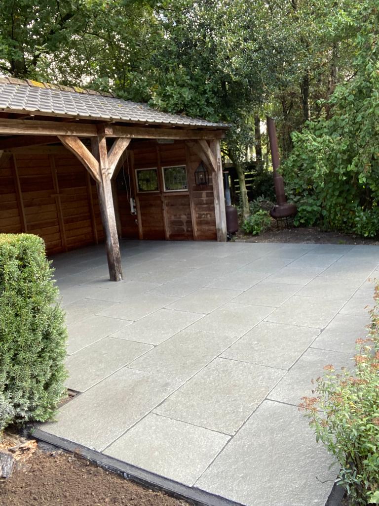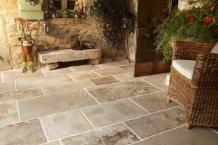 De Bourgondische Dallen Auxerre Grand Gris Natural (Tandur Grey) zijn harde kalstenen tegels uit India. De prachtige kleurnuances bestaan uit diverse grijs en grijsblauwe tinten. De breukruwe tegels worden diverse keren geborsteld en de randen handgekapt. Vervolgens worden deze bewerkte tegels gevibreerd in een bad met keramiekkorrels. Hierdoor onstaat er een geleefde / verouderde tegel met een breukruw slijtvast oppervlak. De Auxerre Grand Gris Natural is geschikt voor binnen en buiten en wordt vaak toegepast bij een landelijke inrichting, als kasteelvloer / kloostervloer bij oude huizen en monumentale panden en uiteraard in de tuin als pad en terras.