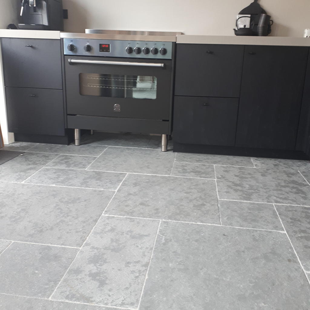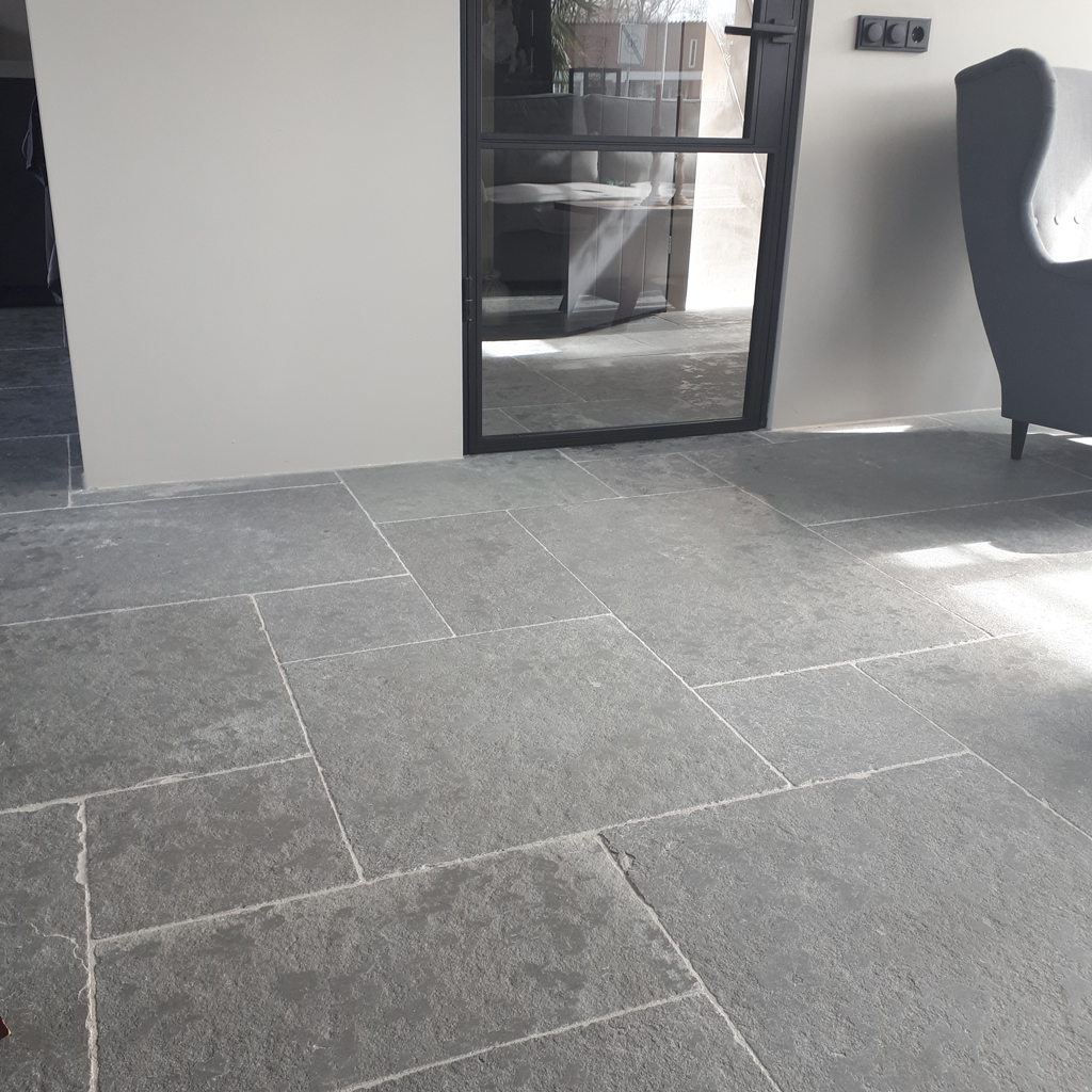 De Bourgondische Dallen Auxerre Grand Gris Semi Honed (Tandur Grey) zijn harde kalstenen tegels uit India. De prachtige kleurnuances bestaan uit diverse grijs en grijsblauwe tinten. De breukruwe tegels worden geschuurd/geborsteld en de randen handgekapt. Vervolgens worden deze bewerkte tegels gevibreerd in een bad met keramiekkorrels. Hierdoor onstaat er een geleefde / verouderde tegel met een breukruw slijtvast oppervlak. De Auxerre Grand Gris Semi Honed is geschikt voor binnen en buiten en wordt vaak toegepast bij een landelijke inrichting, als kasteelvloer / kloostervloer bij oude huizen en monumentale panden en uiteraard in de tuin als pad en terras.