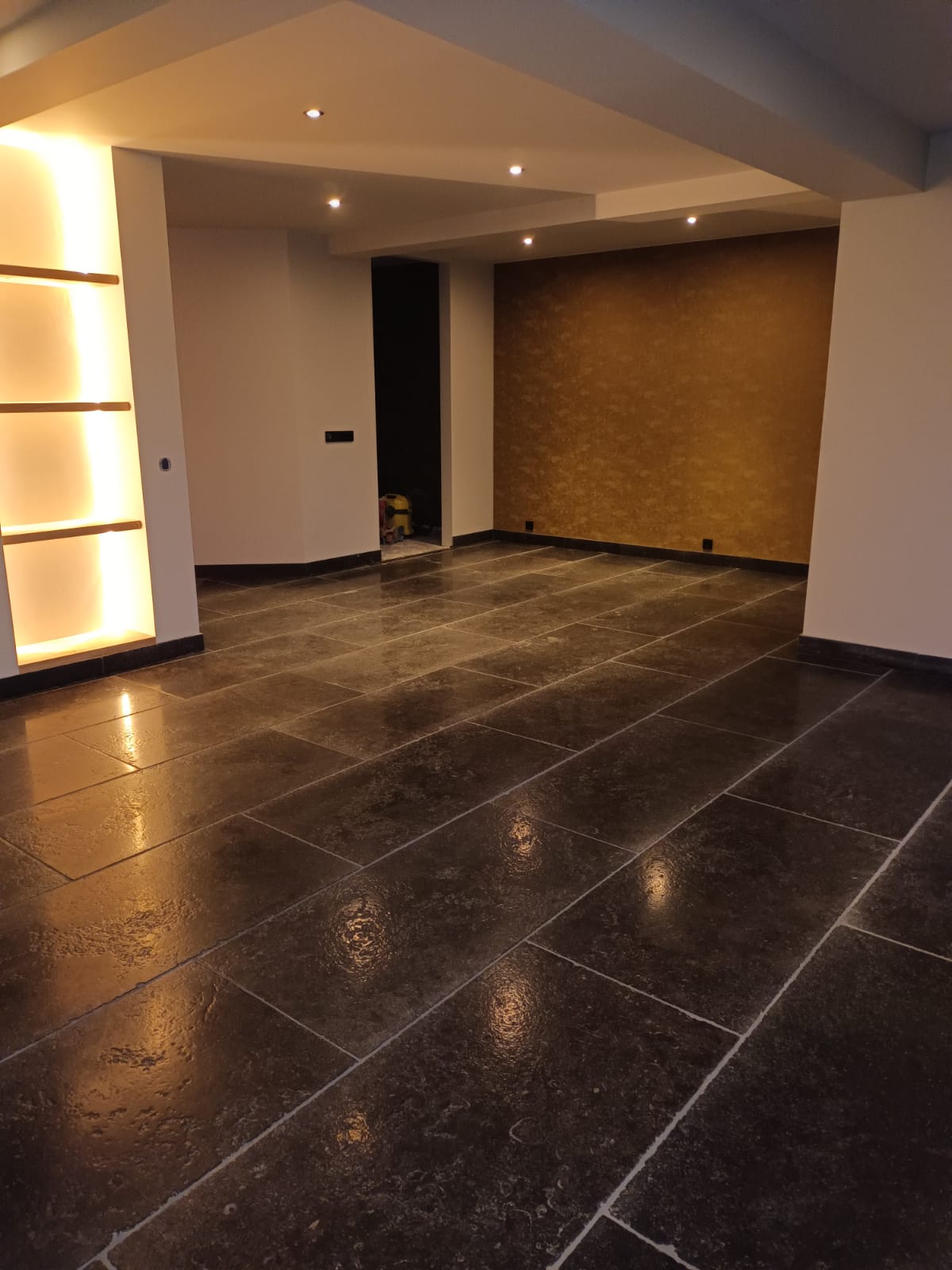 Belgische hardsteen Abdij / Antique is een sfeervolle gemêleerde hardsteen die door zijn neutrale warme kleur makkelijk te combineren is met nagenoeg alle houtsoorten, wit en grijstinten. Deze Belgische hardsteen wordt eerst geborsteld, daarna gezoet en vervolgens machinaal getrommeld. Door deze bewerking krijgt de tegel een prachtige authentieke, verouderde uitstraling. De Belgische hardsteen kan verlijmd worden met een algemene zuurvrije tegellijm. Wat voegen betreft wordt er vaak gebruik gemaakt van een grofkorrelige voeg. Dit komt de rustieke uitstraling nog meer ten goede. Het onderhoud van deze vloer is neutraal b.v. dweilen met Carolin zeep of Marseille zeep. De Belgische hardsteen Abdij / Antique wordt ook wel blauwsteen of Arduin genoemd.