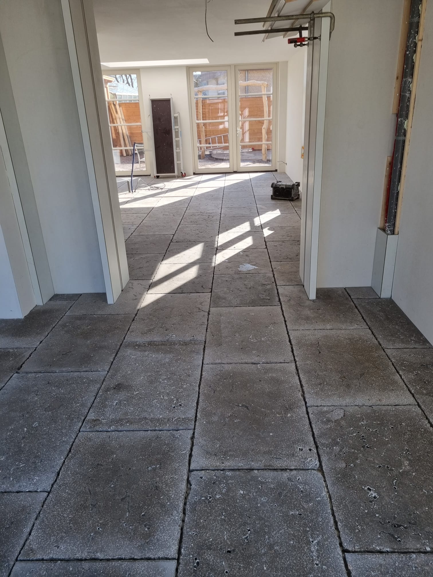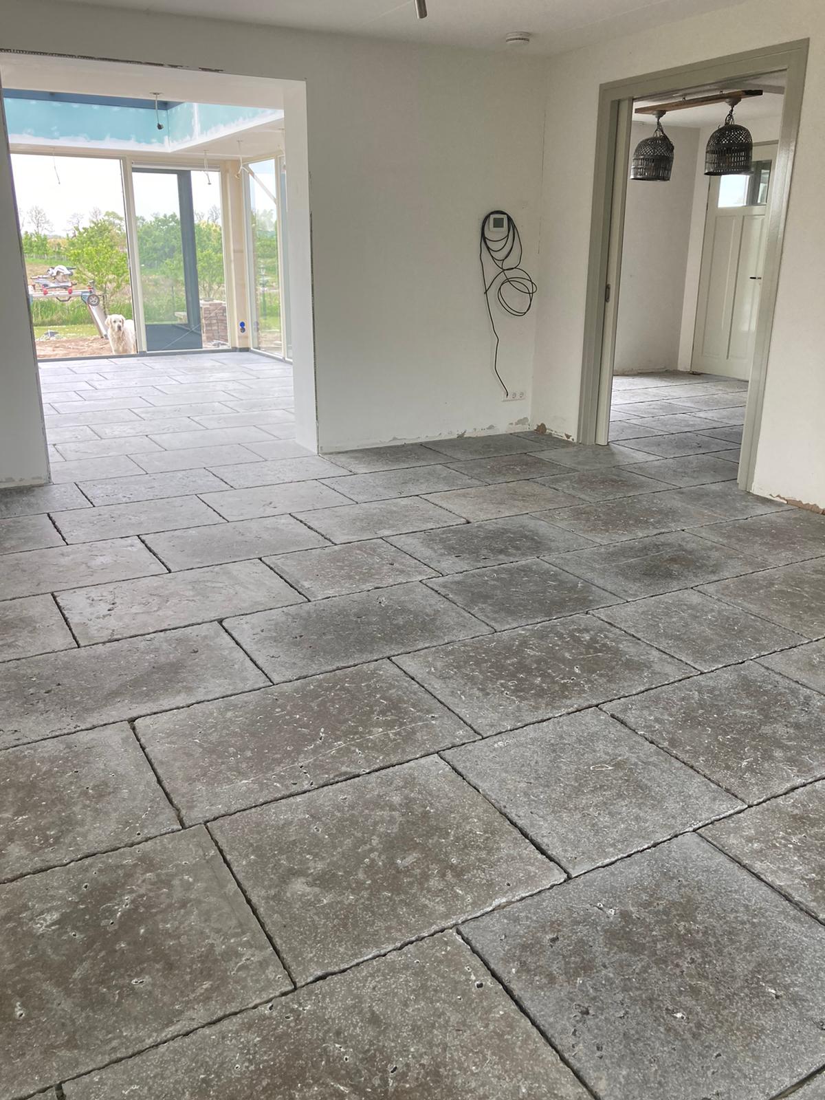 Bourgondische Dallen Chateau Beige Antique 60x90x2,2 cm De Bourgondische Dallen Chateau Beige Brun Antique zijn harde kalstenen tegels uit India. De prachtige kleurnuances bestaan uit beige, gele, geelgroene, okergele, zandgele en bruingele tinten. De breukruwe tegels worden geschuurd/geborsteld en de randen handgekapt. Vervolgens worden deze bewerk...