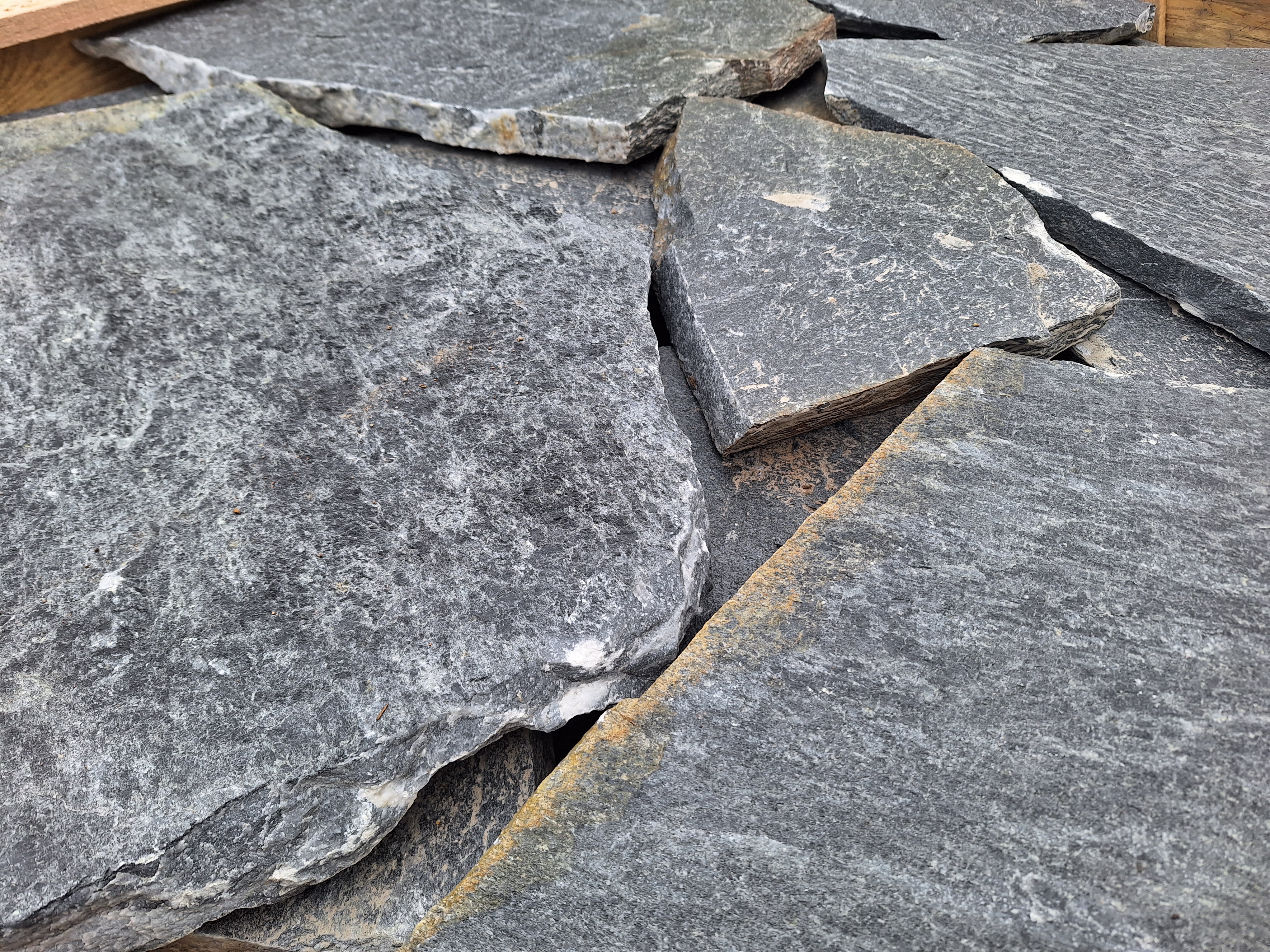 Karystos Green Kwartsiet Flagstones 2,5-4 cm dik € 39,95 p/m2 inclusief btw Borgman van Dijk heeft het grootste, mooiste en beste assortiment flagstones van Nederland. Tevens bieden wij u de scherpste prijzen inclusief btw. De karakteristieke Karystos Green flagstones zijn prachtige bikkelharde groen / grijs / bruin genuanceerde flagstones (kwartsi...