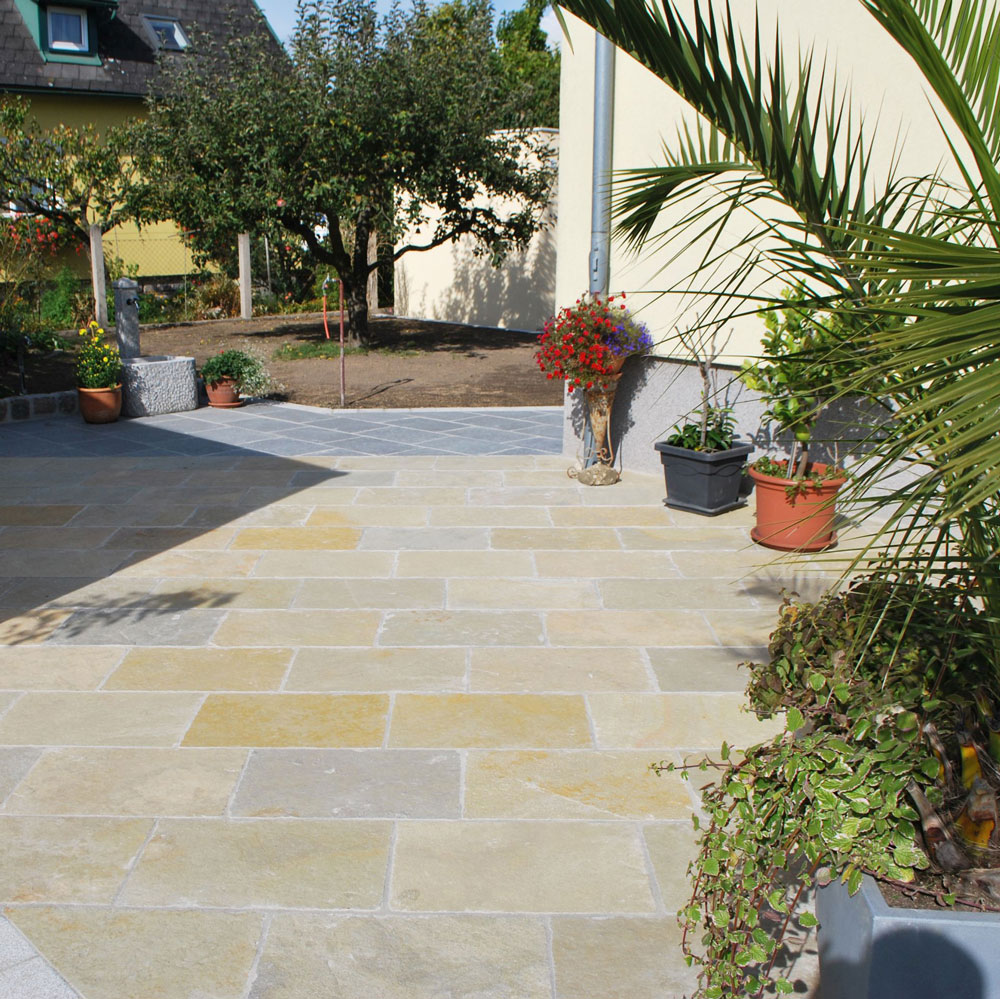 De Castle Stone Beige (Tandur Yellow) is een harde kalsteen uit India. De prachtige kleurnuances bestaan uit beige, gele, geelgroene, okergele, zandgele en oranjegele tinten. De breukruwe tegels worden geborsteld en de randen handgekapt. Vervolgens worden deze bewerkte tegels gevibreerd in een bad met keramiekkorrels. Hierdoor onstaat er een geleefde / verouderde tegel met een breukruw slijtvast oppervlak. De Castle Stone Beige is geschikt voor binnen en buiten en wordt vaak toegepast bij een landelijke inrichting, als kasteelvloer / kloostervloer bij oude huizen en monumentale panden en in de tuin voor een mediterraanse sfeer.