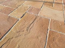 Castle Stone Beige Groot Wildverband 2,2 cm dik Semi Honed De Castle Stone Beige (Tandur Yellow) is een harde kalsteen uit India. De prachtige kleurnuances bestaan uit beige, gele, geelgroene, okergele, zandgele en oranjegele tinten. De breukruwe tegels worden geborsteld, plaatselijk geschuurd en de randen handgekapt. Vervolgens worden deze bewerkte tege...